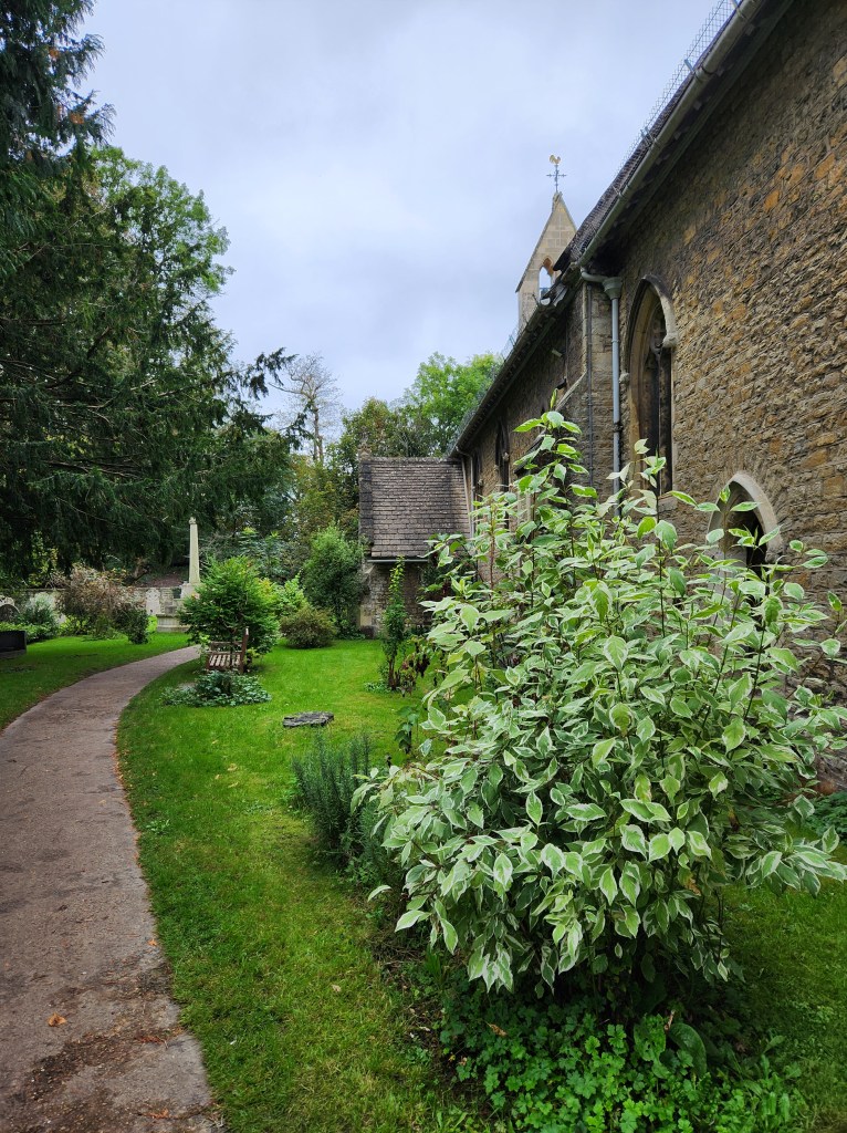 After the tour ended, we took a short walk to Holy Trinity Church, where Lewis is buried. To get there, you have to walk through the neighborhood, past quaint houses and narrow lanes, until you reach a gate opening to trees. The church isn’t large at all, and the churchyard isn’t flashy or pronounced. It’s simply there, as it’s been for years, quietly tucked away in this corner of the world. After finding Lewis’s grave, we entered the church itself, where a few others who’d toured the Kilns with us were just leaving. Then we were alone in the old church building.